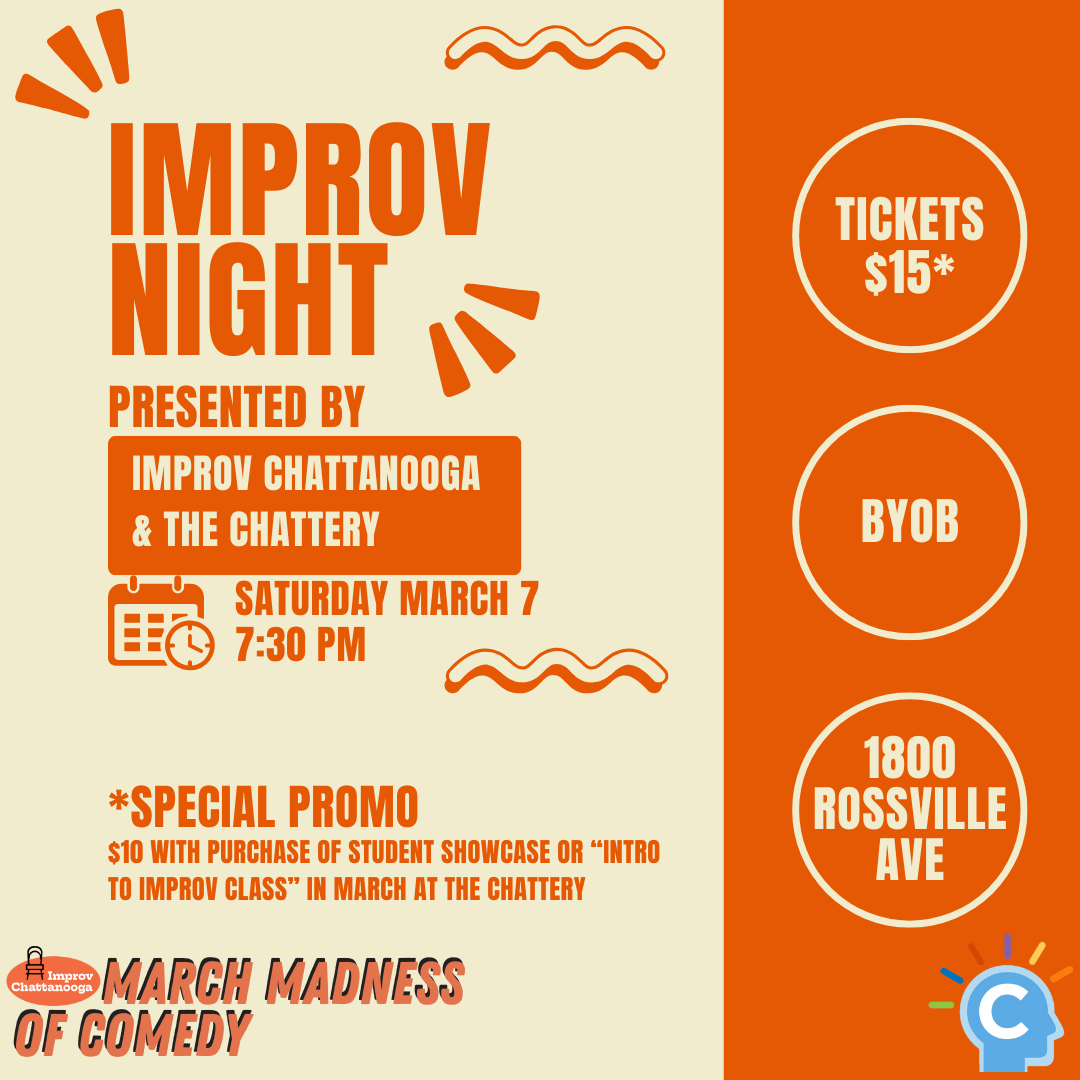 Improv teams from across Chattanooga come together for a unique night of comedy. Half of the ticket sales go to The Chattery.
